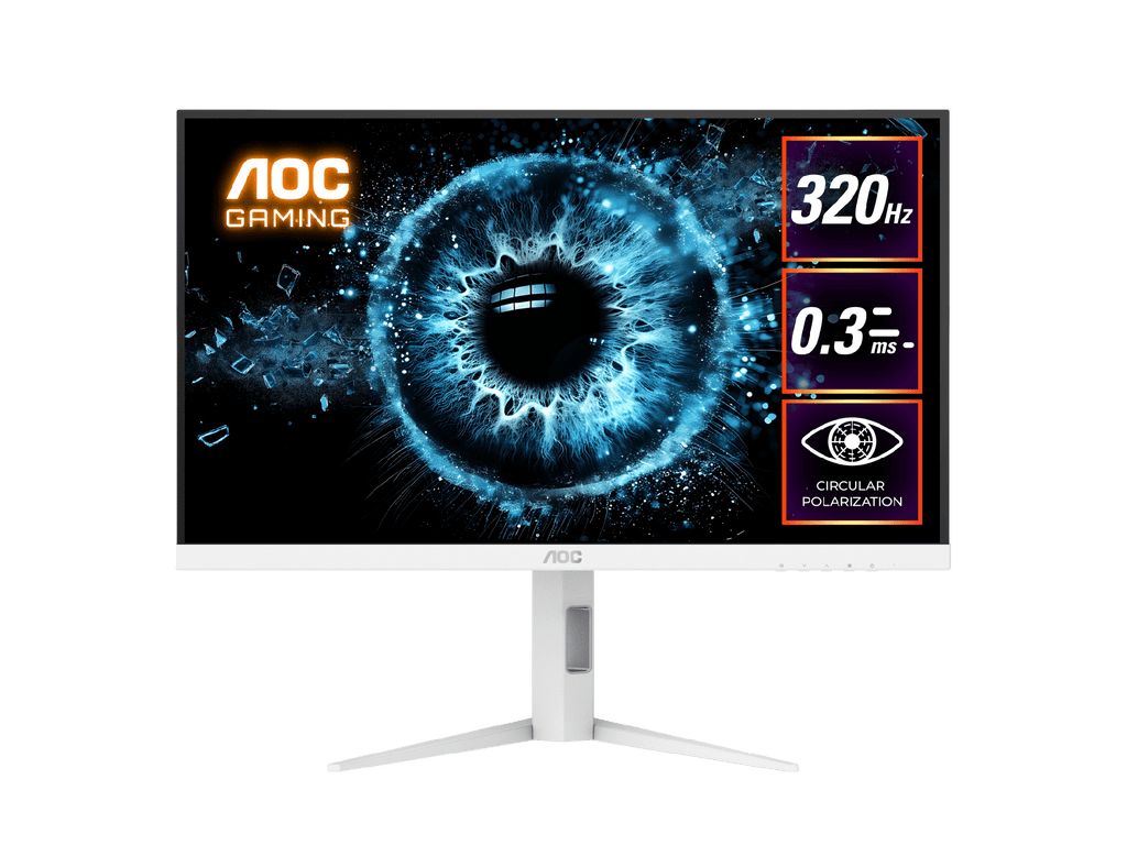 AOC Q27G4SL/WS 27" Circular Polarized Gaming Monitor. White. 2560 × 1440 (QHD), Circular-polarized tech, 320Hz, 0.3ms, Adaptive Sync, DisplayHDR 400
