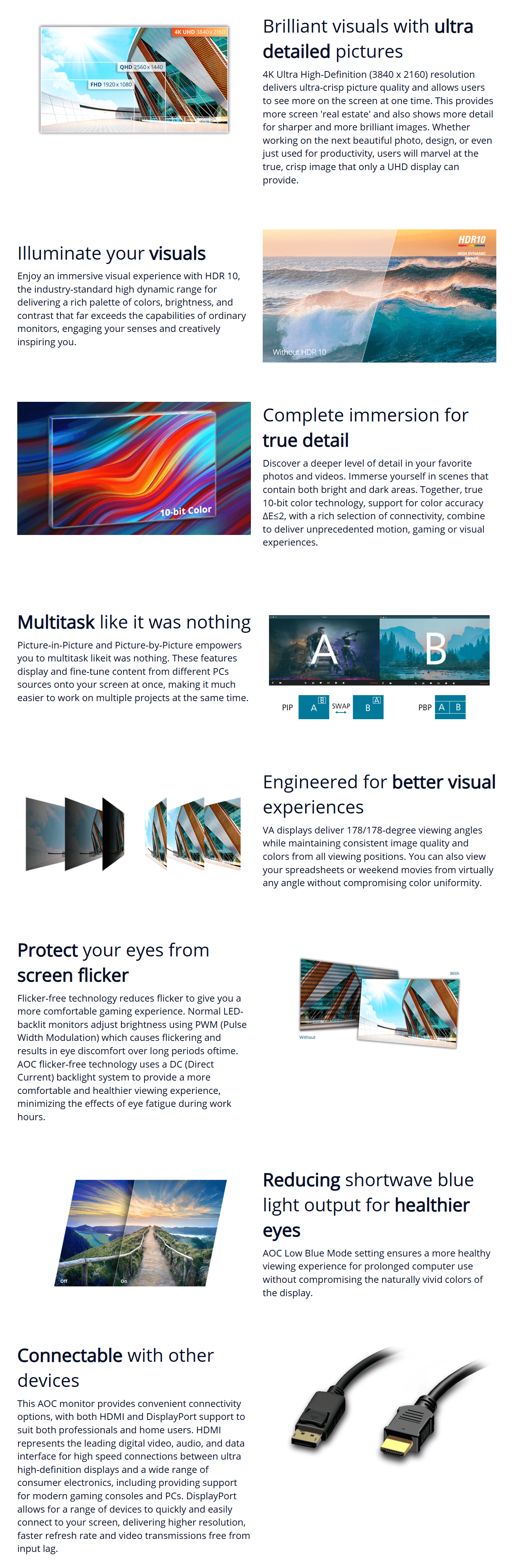 AOC U32V11N 31.5" 4K Monitor. 3840 × 2160 (UHD), HDR10, VA, 10-bit color, PIPPBP